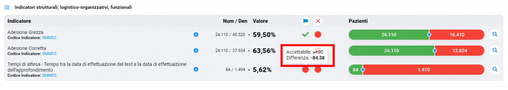 Der Einfachheit halber können Symbole angezeigt werden, um festzustellen, ob das Ziel erreicht wurde oder nicht, und ein Tooltip kann beim Mouse-over erscheinen, um den Wert des Ziels und die Abweichung davon anzuzeigen.