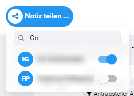 Es erscheint ein Menü, in dem Sie die Benutzer auswählen können, mit denen Sie die Notiz teilen möchten.