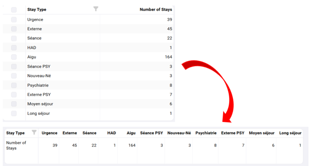 Voici un exemple lorsque l'option « Transposer le tableau » est activée :