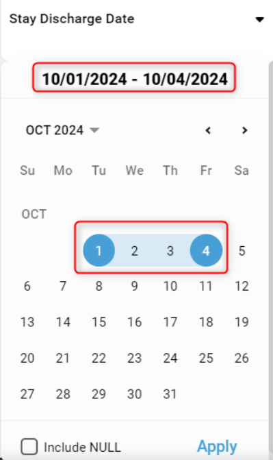Le filtre ouvre un sélecteur de date à partir duquel il est possible de choisir la date de début et la date de fin.