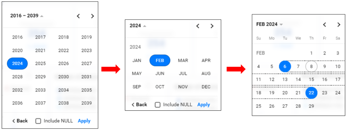 Cliquez sur une date pour la sélectionner. Si vous cliquez sur le mois, vous ouvrirez les détails de l'année et vice versa.