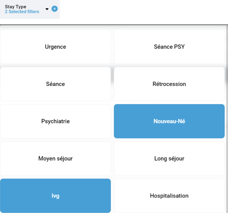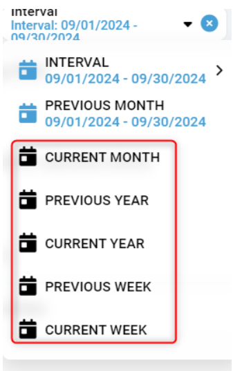 Le filtre n'ouvre aucun sélecteur, mais applique un intervalle défini par l'étiquette. Une période peut être prédéfinie avec ce type, par exemple : l'année dernière, le mois dernier, hier, etc.