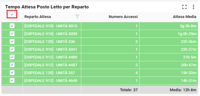 Per selezionare/deselezionare tutte le righe, cliccare sulla casella di selezione nell'header della tabella.