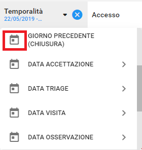 Il filtro al click apre un selettore temporale, da cui è possibile scegliere i valori 'dal', 'al' in riferimento alla data selezionata.